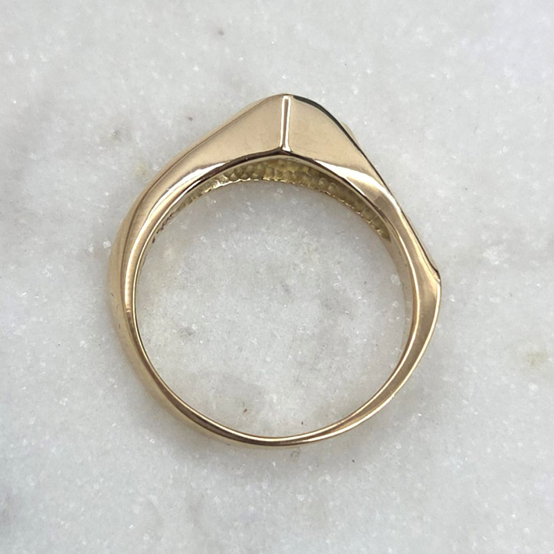 The low profile design sits close to the finger, making the ring comfortable for everyday wear while maintaining a contemporary, architectural look.